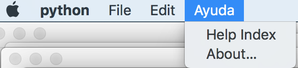 Si cambias el código menubar.add_cascade(label="Help", menu=helpmenu)pormenubar.add_cascade(label="Ayuda", menu=helpmenu)observarás que esa opción extra ya no aparece.