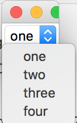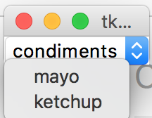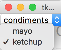 Un OptionMenues parecido visualmente al Menubutton, sin embargo sólo permite seleccionar una de las opciones del menú que despliega y la muestra en el botón.